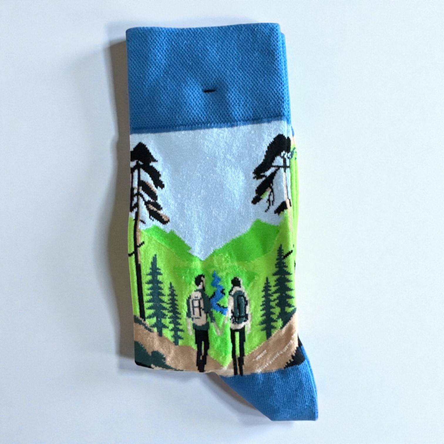 ⛰️ Günlük stilinize macera dolu bir dokunuş katacak bu doğa yürüyüşü temalı çoraplarla tanışın! 🎒 Canlı mavi, yeşil ve siyah tonlarıyla tasarlanmış bu çoraplar, üzerindeki dağ, orman ve sırt çantalı yürüyüşçü deseniyle doğa tutkunuzu yansıtacak. ✨ Neden bu çorapları seçmelisiniz?