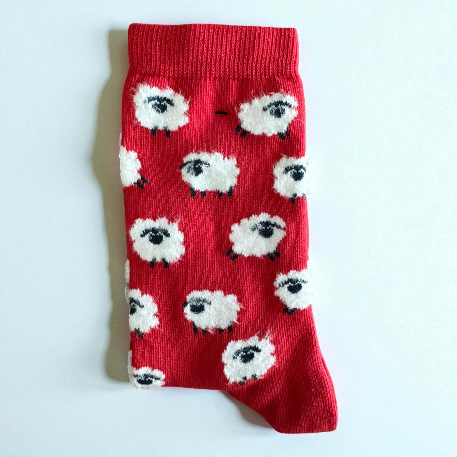 ❤️ Günlük stilinize canlılık ve neşe katacak bu kırmızı kuzu desenli çoraplarla tanışın! ⚪ Parlak kırmızı zemin üzerinde serpiştirilmiş pofuduk beyaz kuzucuklar, her adımınıza tatlılık ve enerji katacak. ✨ Neden bu çorapları seçmelisiniz?